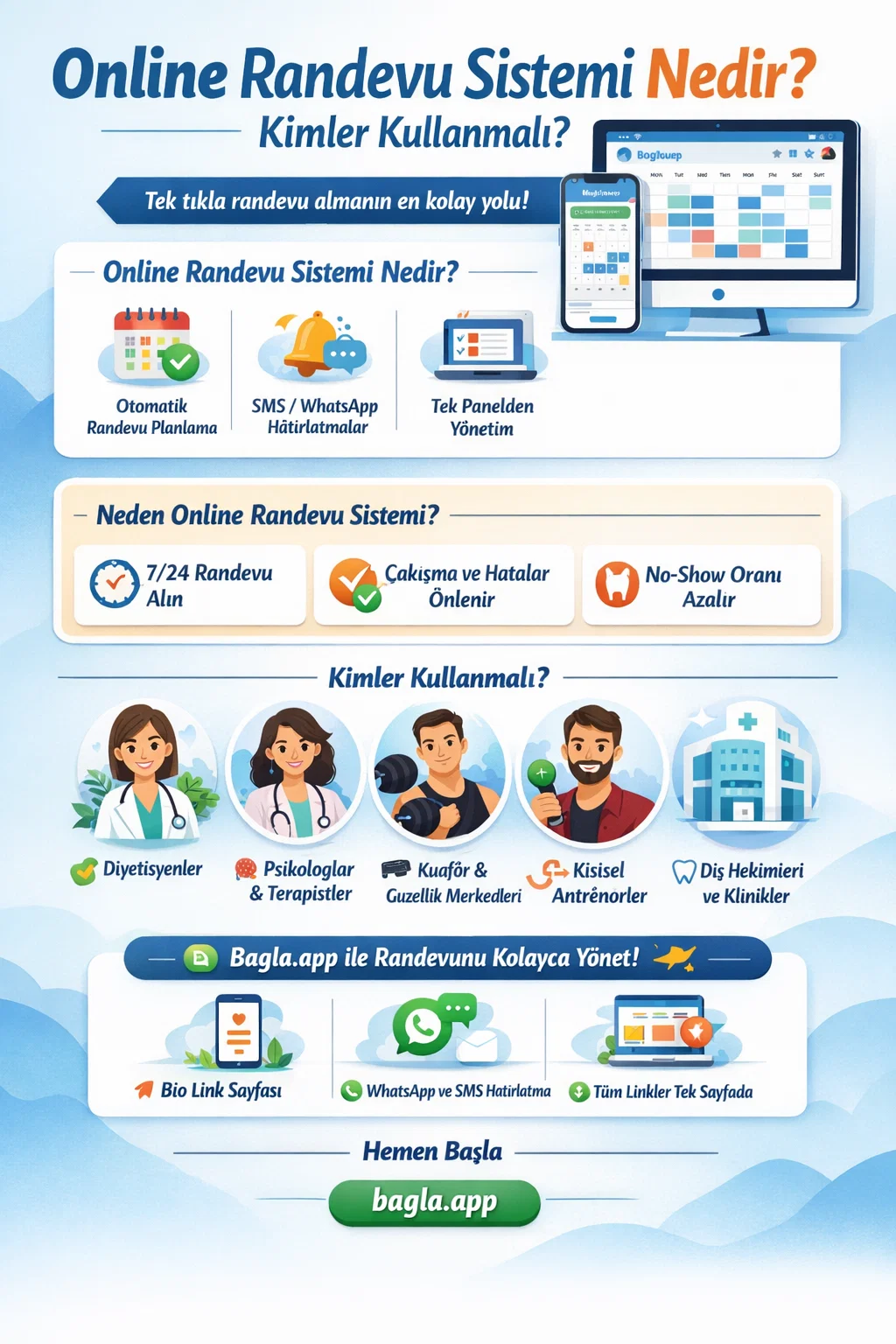 internet üzerinden uygun tarih ve saat seçerek randevu oluşturmasını sağlayan dijital bir altyapıdır.