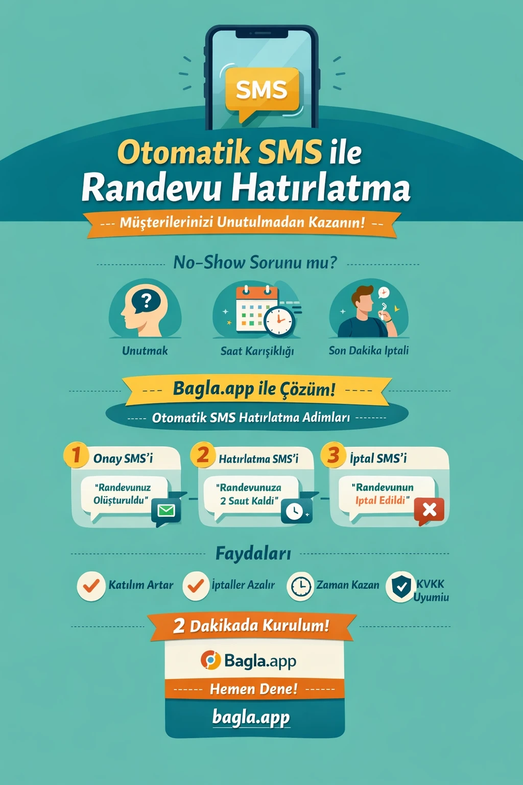 Bagla.app’in akıllı randevu sistemi, SMS sürecini tamamen otomatik yönetir: