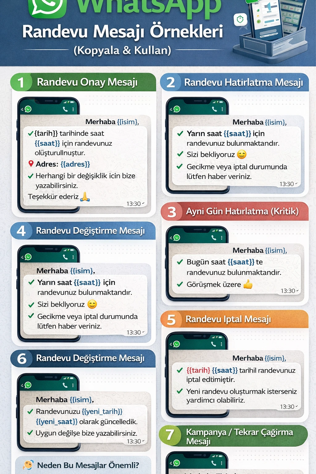 👉 Özellikle hatırlatma mesajları, randevuya gelmeme oranını %30-50 azaltabilir.